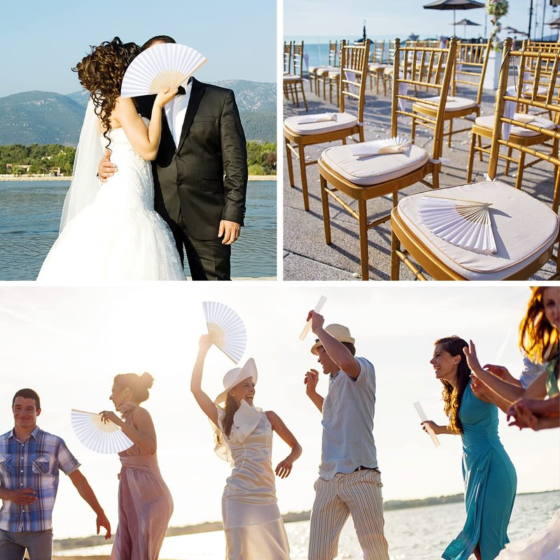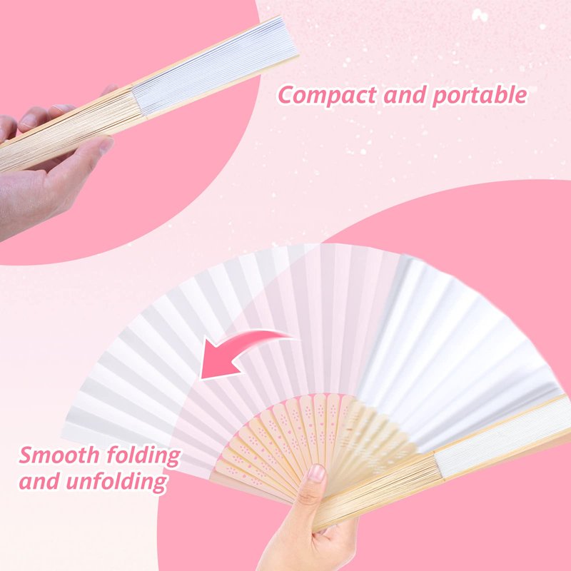 - EXCELLENT USER EXPERIENCE - Our white folding fans are compact and portable, allowing you to use anywhere and anytime. Just a slight waving, a good breeze will be made. Sturdy and durable structure assuring a long-term use. Easy to fold and unfold, no jamming.