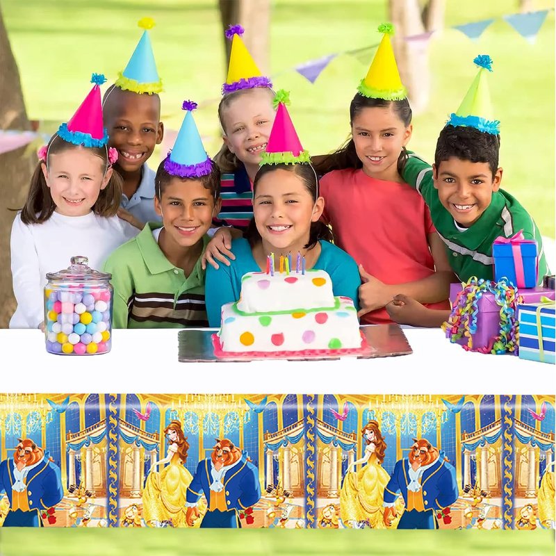 [PERFECT SIZE]--Beauty and the Beast birthday plastic table cover measures 70X42 inch, rectangular.Ideal for boy children's birthday parties,baby shower, celebrations.