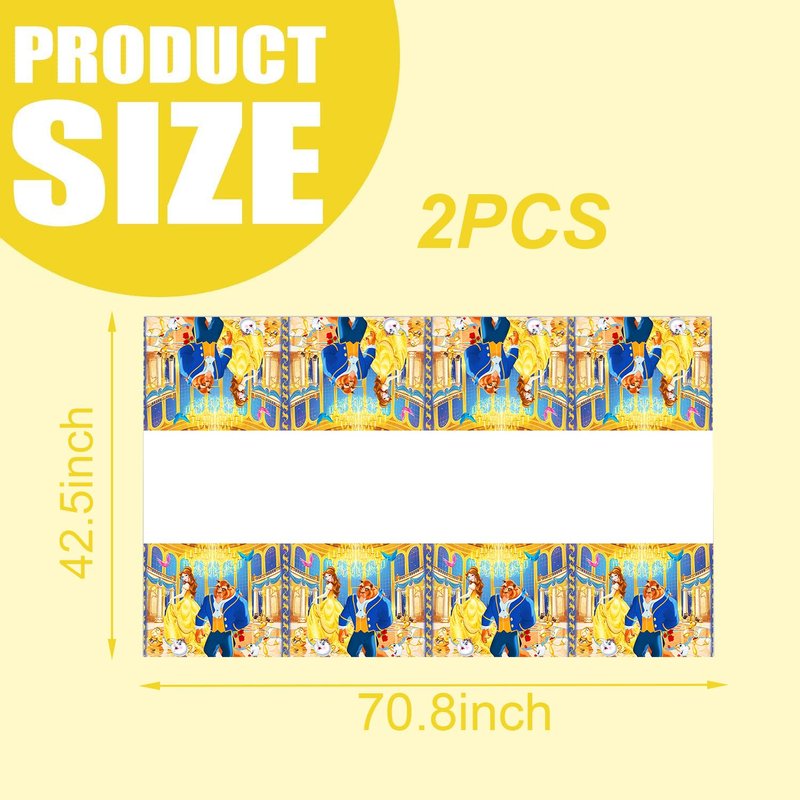 DoMiDoLa 2Pack Beauty and The Beast Tablecloth Disposable Tablecover Birthday Party Supplies and Decorations for Kid Boy Baby Shower Princess Tables 70"X42"