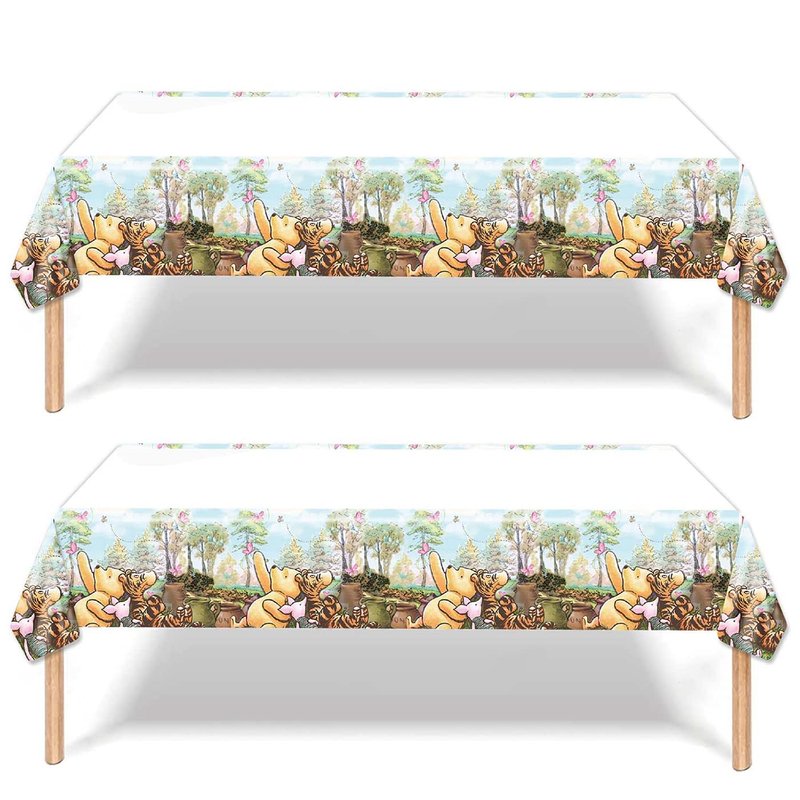 DoMiDoLa 2pcs Pooh Tablecloth Disposable Tablecover Birthday Party Supplies and Decorations for Kid Boy Baby Shower Rectangle Tables 70"X42",2 Pack