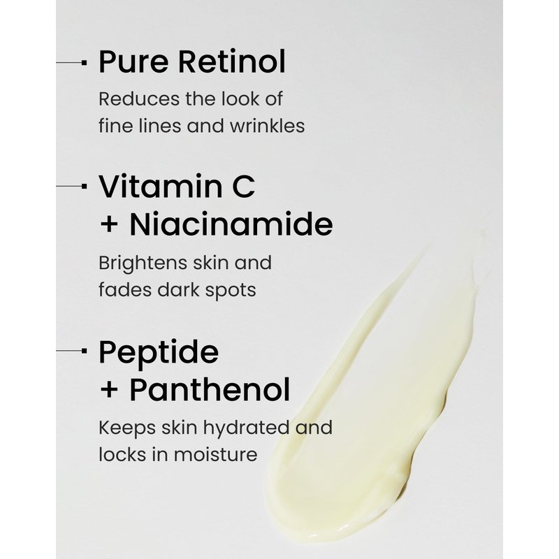 - PURE RETINOL FORMULA - Powered by retinol 0.05%, this serum minimizes fine lines and aging signs, while combining with vitamin C and niacinamide for skin illumination and dark spot reduction. Our encapsulation technology ensures double absorption, maximizing the benefits for your skin.