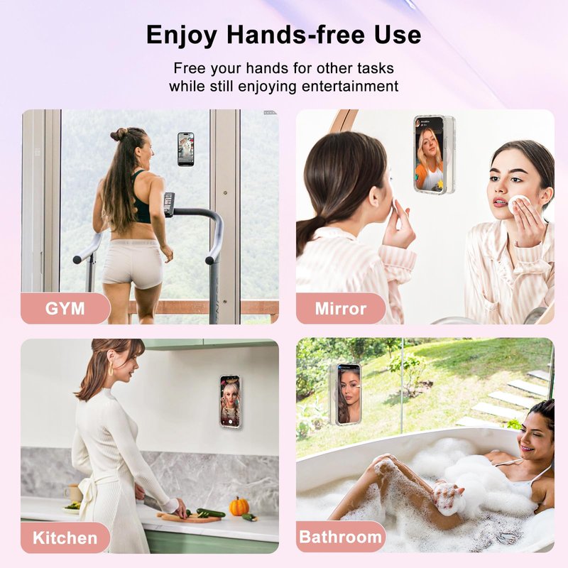 - NON-SLIP HANDS-FREE MOBILE MOUNT: This innovative for suction cup magsafe phone mount can easily fix your phone on flat, smooth and clean surfaces (such as mirrors and glass; tiles; refrigerators; car dashboards, etc., not suitable for walls; wooden surfaces; dust and other non-smooth and uneven surfaces.) to achieve hands-free selfies/videos. Press the magnetic suction phone mount to ensure it is firmly in place before releasing it. After use, wash with warm water, wipe dry with a rag, reusable