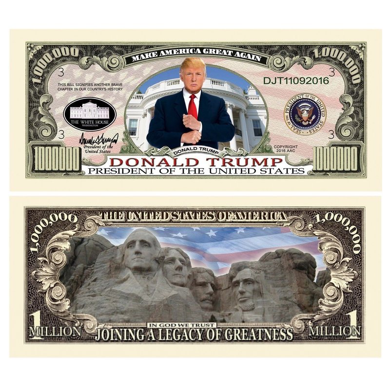 Donald Trump Million Dollar Legacy Bill with Bonus “Thanks a Million” Gift Card Set and Clear Protector