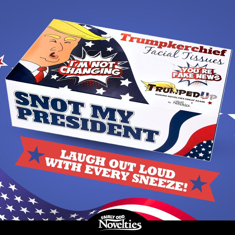 - Make Novelties great again! - Whether you're in the maga crowd or firmly against it, This box of tissues is the perfect Presidential novelty item!