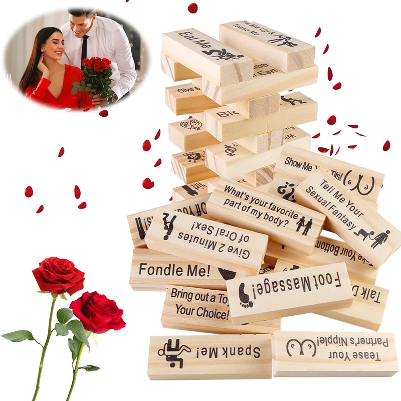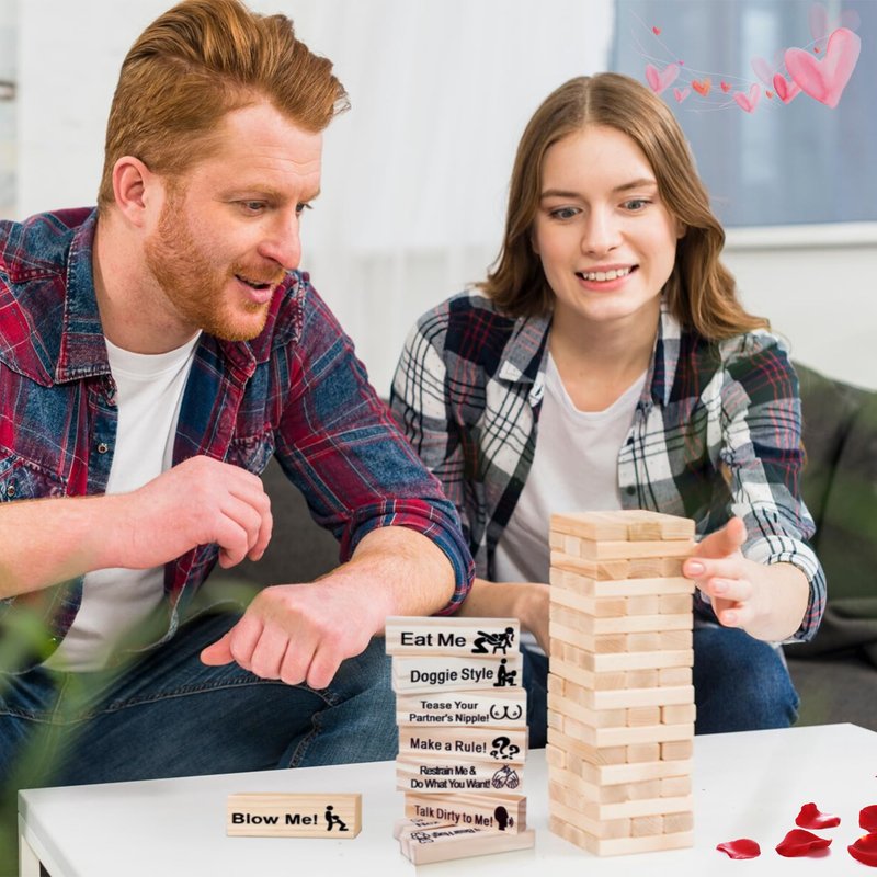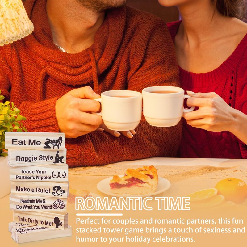 - Stack Game: Experience the thrill of the 48 pcs block tower game, a captivating that includes risqué prompts and challenges, making it perfect for date night ideas and enhancing intimacy between couples.