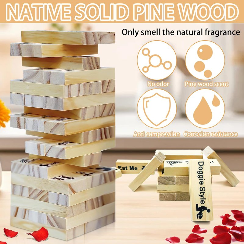 - Reusable and Fun: This block tower game is designed for repeated enjoyment. Each wood tower is meticulously crafted to allow for countless playful evenings, ensuring that you and your partner keep the laughter and excitement alive during your intimate moments.
