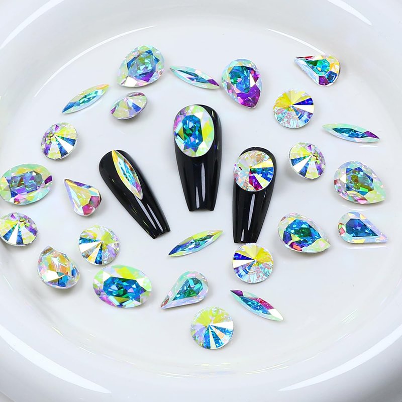 Dong ZHOU 75 Pieces DIY Nail Art Rhinestone Crystal AB Glass Rhinestone Nail Set Loose Beads Crystal Sewing On Stone Pointed Back Jewelry Rhinestone Gems Decorations for Nail Art Craft
