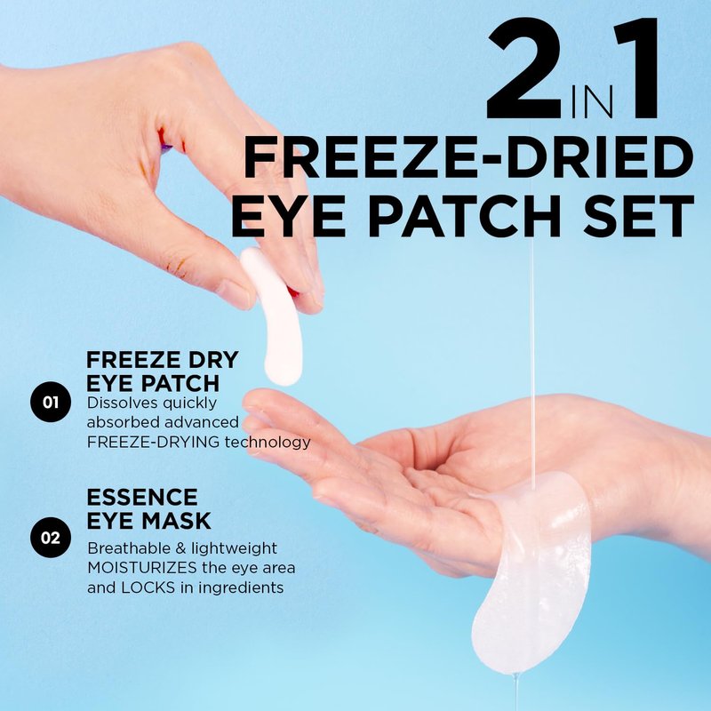 - Dongyu 2 and 1 Dual-Action Eye Patch Set: The -49℉ Lyophilized Eye Masks melt within 10 seconds and fully absorb within 15 minutes, offering high ingredient preservation, powerful repair, and no preservatives. The Essence Eye Masks are hydrating, soft, skin-friendly, breathable, and enriched with effective ingredients like caffeine, peptides, and sodium hyaluronate. This luxurious eye treatment product provides a salon-quality skincare experience in the comfort of your home, offering both instant and lasting moisture and radiance for your eyes.