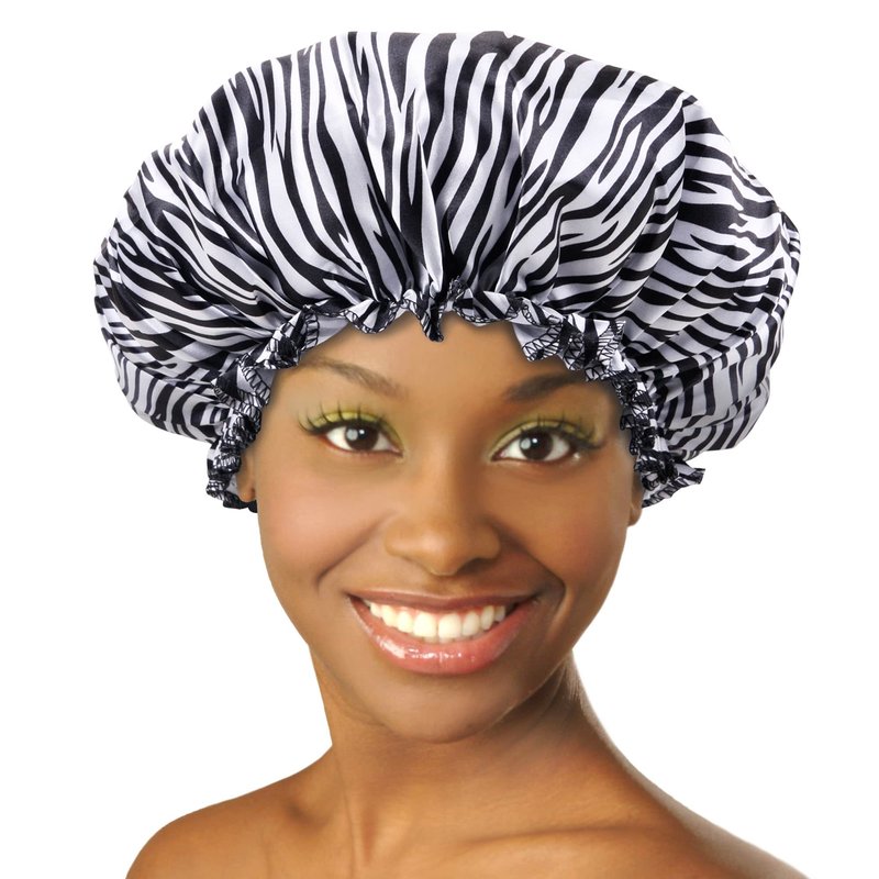 DONNA ARGAN Patterned Sleep Cap Hair Sleep Shower Cap Bonnet Satin Bonnet for Sleeping Hat XL Zebra Black