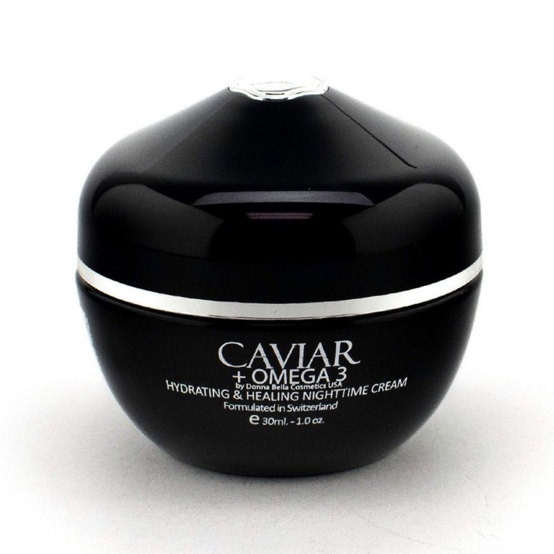 Donna Bella’s Caviar + Omega 3 Caviar Hydrating & Healing Nighttime Cream replenishes lost moisture and helps to sooth weary and damaged skin. Continued use helps correct sun damage, minimizes wrinkles and restores volume.