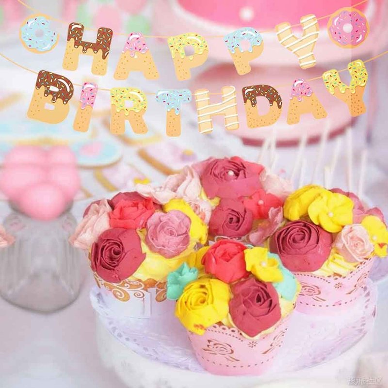 - Donut Happy Birthday Banner Decorations, Add More Happy and Extra Atmosphere to Comrades, Playmates, Gamers. Have Fun on Donut Game, Give A Surprise to Partner.