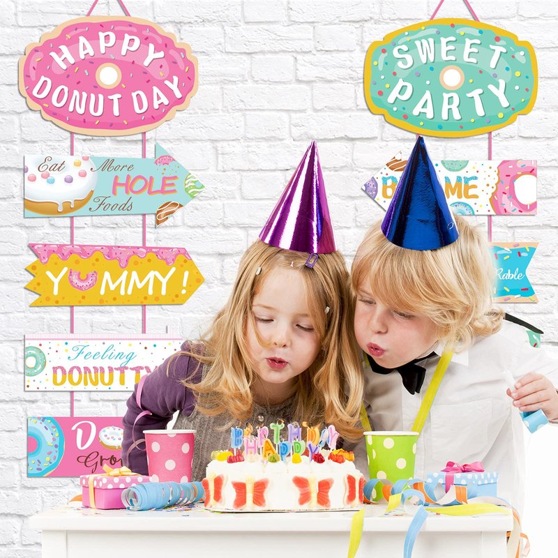 Donut Party Supplies Hanging Porch Sign Banner - Donut Food Theme Party/Tea/Doughnut Baby Shower/Birthday Party Decorations Favors Paper Door Garland