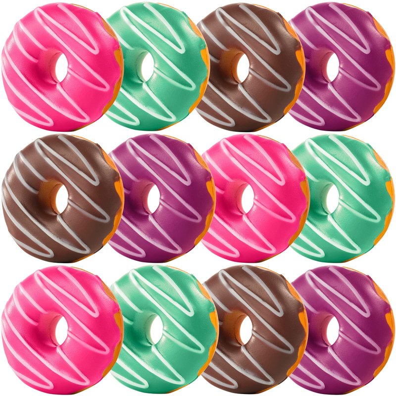 Donut Squishies Party Supplies - (Pack of 12) 3 Inch Slow Rising Squishy Toy Donuts for Kids, Squeeze Ball and Stress Relief Donuts for Decorations and Themed Birthday Party Favors