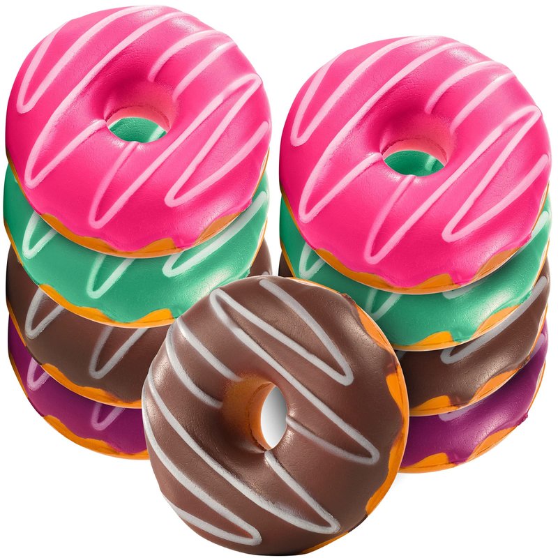 - CUTE & ADORABLE: Delight your kids and party guests with these cute striped squishy donuts. These hard to resist slow rising squishies offer a cute and adorable way to play with one of your favorite foods. Our squishy toys for kids are great to use as party accessories, decorations, centerpieces, backdrops, and themed birthday party favors