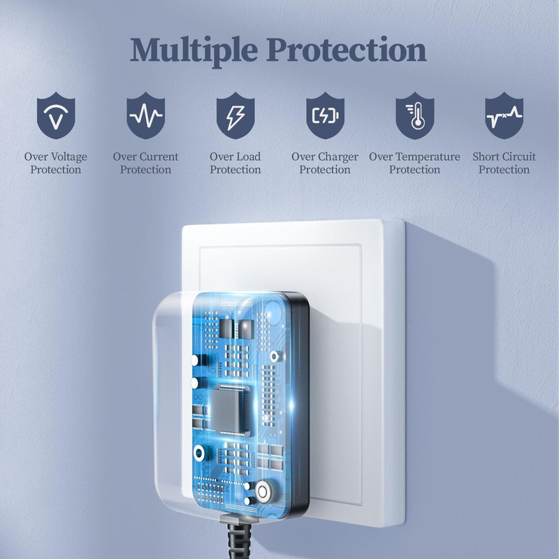 - Power cord has been certified by UL, More durable and safe while charging your devices than other charger, AC Adaptor comes with fully protections such as short circuit protection, Over current protection, Over voltage protection, Over temperature protection