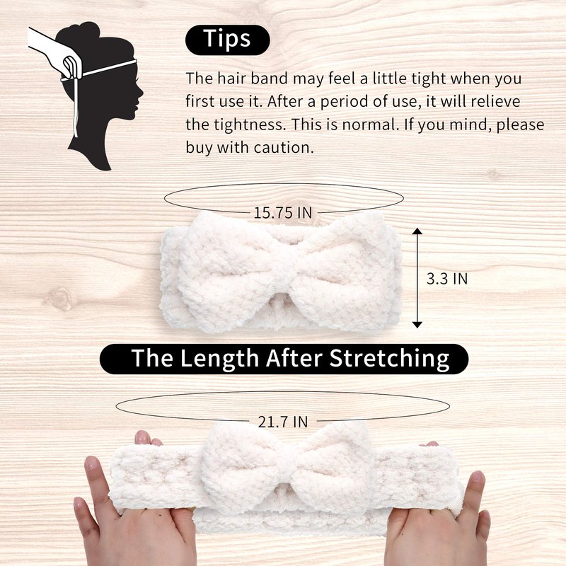- Adjustable size:the width of these makeup headbands is approximately 3.3 inches / 8.5 cm, and the circumference is approximately 15.75 inches / 40 cm. The makeup headband can be stretched to 23.6 inches / 60 cm, suitable for children and adults.