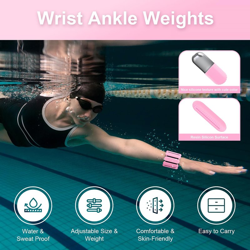 - Workout Routine: Weighted band fits both the wrist and ankle and the weight portions.Wrist weights handy to use with all kinds of the exercises activities in water resistance and sweat-proof feature. The wearable ankle/wrist weights made of durable and comfortable silicone material, make it easily clean them after intense workout.