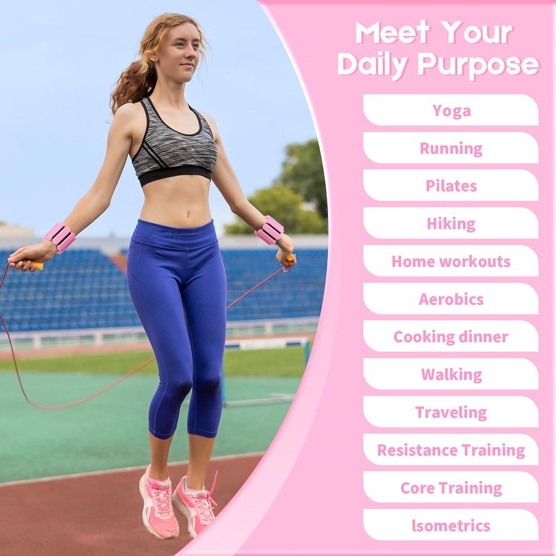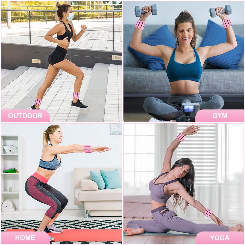 - Strength Training Wrist Ankle Weights: Wrist wights for women set of 2 make you workout Resistance Weights for Yoga, Pilates, Dance, Aerobics, hiking and Walking .Great weights to add a bit extra strength allow you to use in various activities, and Increasing your strength, endurance and muscle tone. Versatile and portable wrist weights is good for outdoor & indoor.