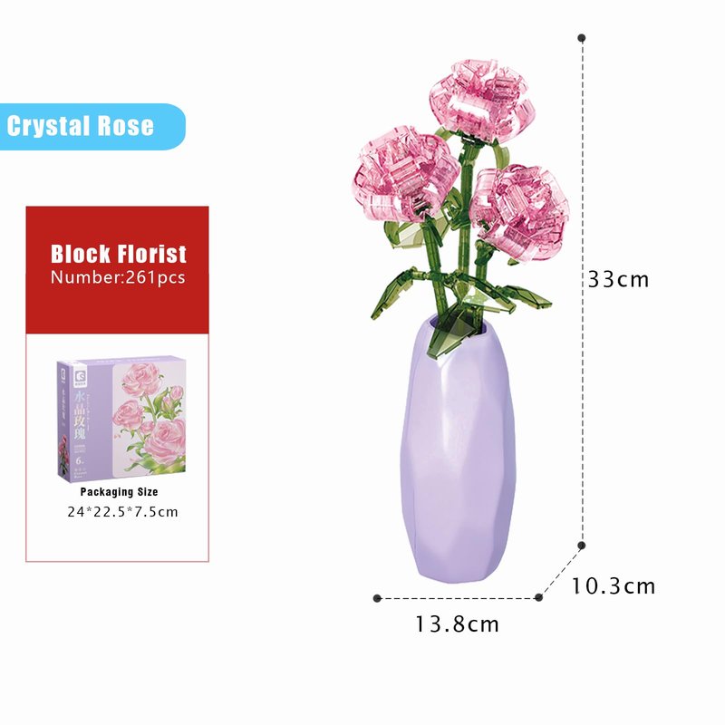 Building your bouquet is fun and easy, making it a great activity for kids and adults to enjoy together. The set includes a vase for easy display, so you can showcase your creation in your home or office.