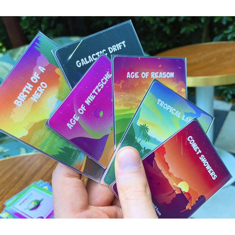 - Premium Design - With dual-surfaced, mirrored silver interiors and distinctive "Green Jungle" back for Trait cards and "Pink moonlit" landscape for the Ages. Each Doomlings card feels like it's inside a picture frame!