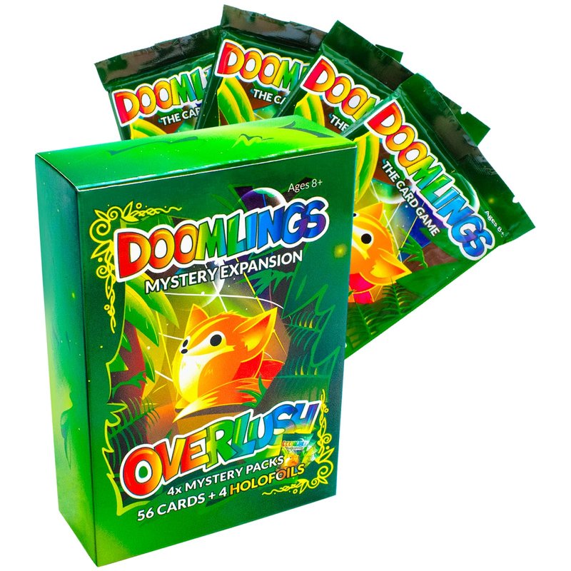- Unbox the Thrill: Dive into Enderas´s Jungle with the Doomlings Overlush Mystery Expansion, featuring 60 cards per box, including 56 assorted game cards and 4 collectible Mystery Holofoils. This expansion works seamlessly with the Doomlings base game