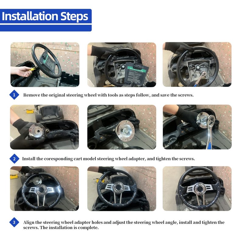 - [Install]: Golf steering wheel adapter installs in minutes with steering wheel column.Replace worn and rusty adapter, made your golf cart look like new again.