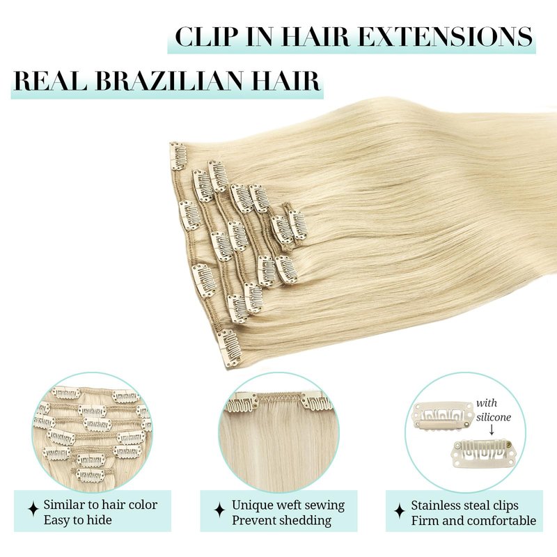- 【U-Shape Metal Clips to Reduce Tear & 5 Minutes Quick to Wear】Stainless steel metal clips with unique U-shaped design are firm, making it comfortable to wear. The back has a soft rubber silicone which effectively reduces the pulling on the hair and protects your scalp. You can easily wear or take off the hair extensions within 5 minutes. Even if it's your first time wearing a hair extension, you can easily handle it.