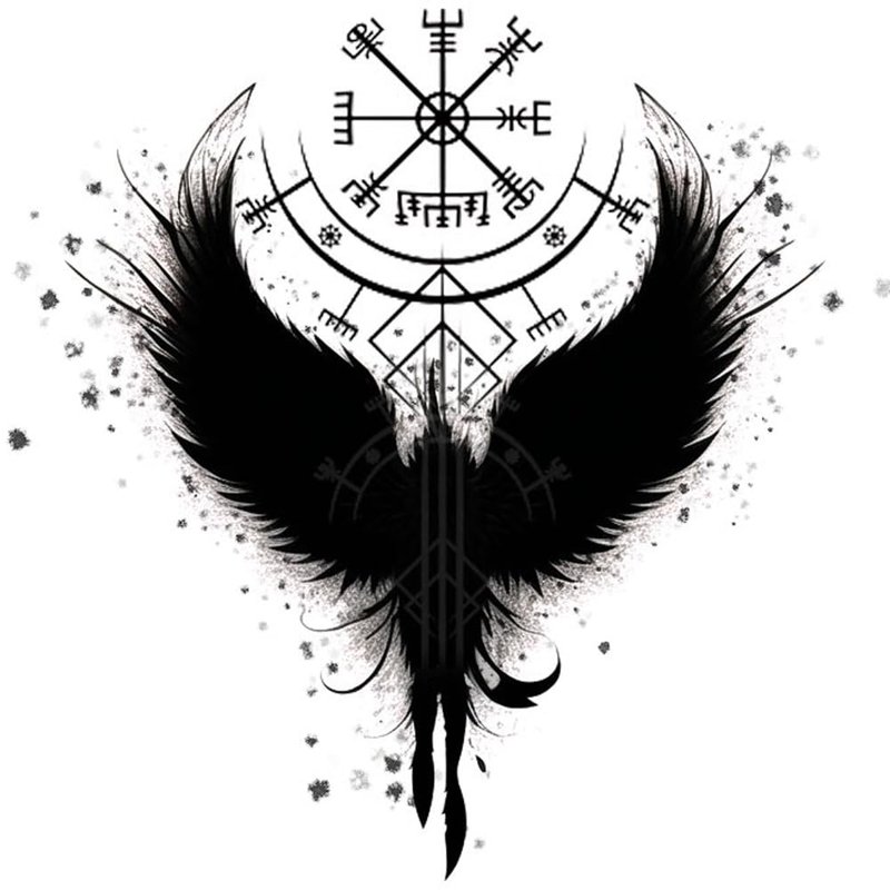 Dopetattoo 6 Sheets Temporary Tattoo Helm of Awe Viking Symbol Viking Fake Tattoos Norse Wing Tattoos Neck Chest for Women Men Adults(No more Sticky)