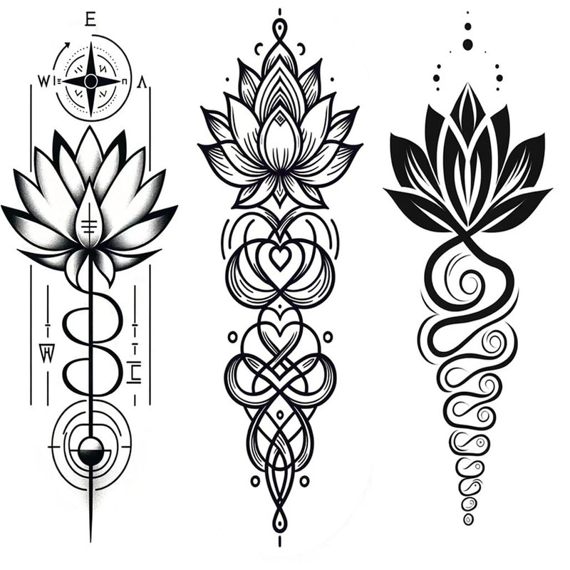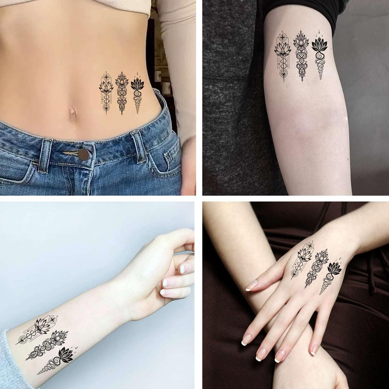 Dopetattoo 6 Sheets Temporary Tattoo Lotus Unalome Tattoo Lotus Flower Tattoo Fake Tattoos for Women Men Girls Neck Tattoo Hand Tattoory tattoo for Neck Arm Chest for Woman