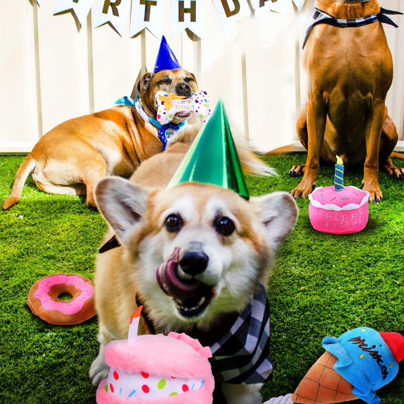 - 👑Funny Dog Gift: These soft plush toys are great for dogs to chew and play with, and are helpful in helping them clean their mouths and teeth, and burn off their high energy while playing.Whether you give or receive, this Birthday Surprise Cake toy will be the most coveted gift during a birthday pup bash