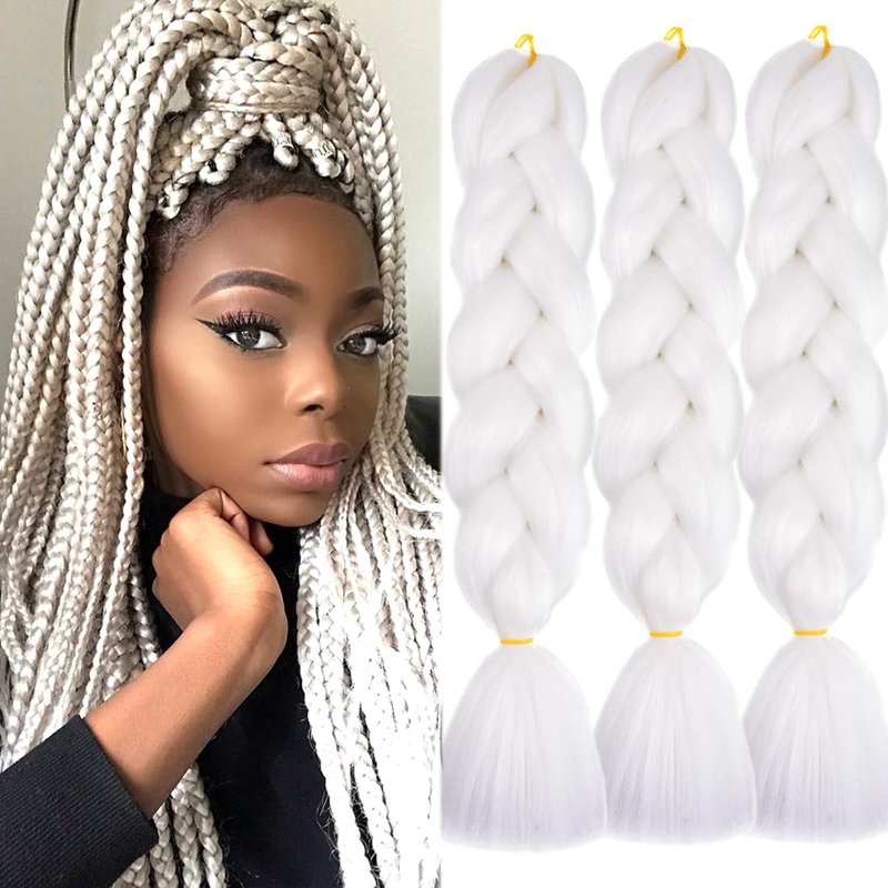 DOREN Jumbo Braids Hair Extensions Synthetic Hair Pure Color 3 Packs for Twist Box Braiding Hair 24inches #60 White Color