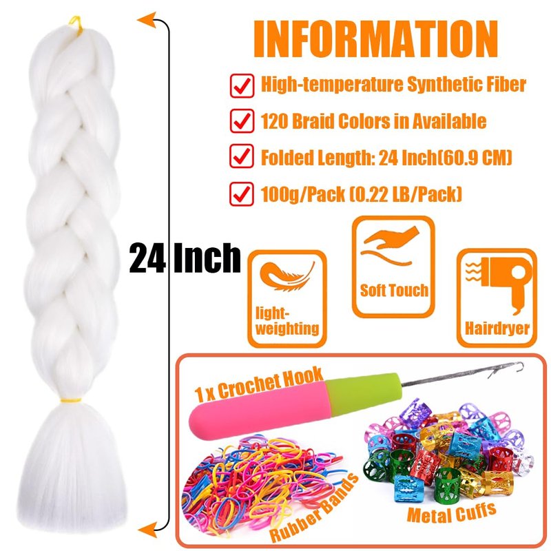 - 【Package Contains】3PCS Jumbo Braiding Hair Extensions + 1 Crochet Hook + Some Rubber Bands and Metal Cuffs. Fully accessorized and ready to knit upon receipt.