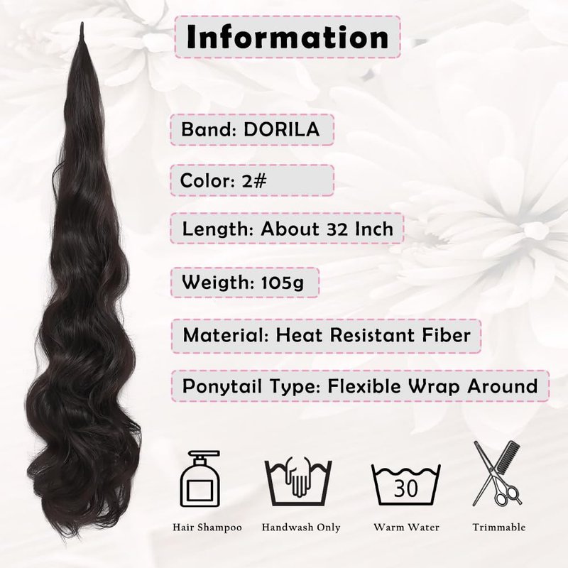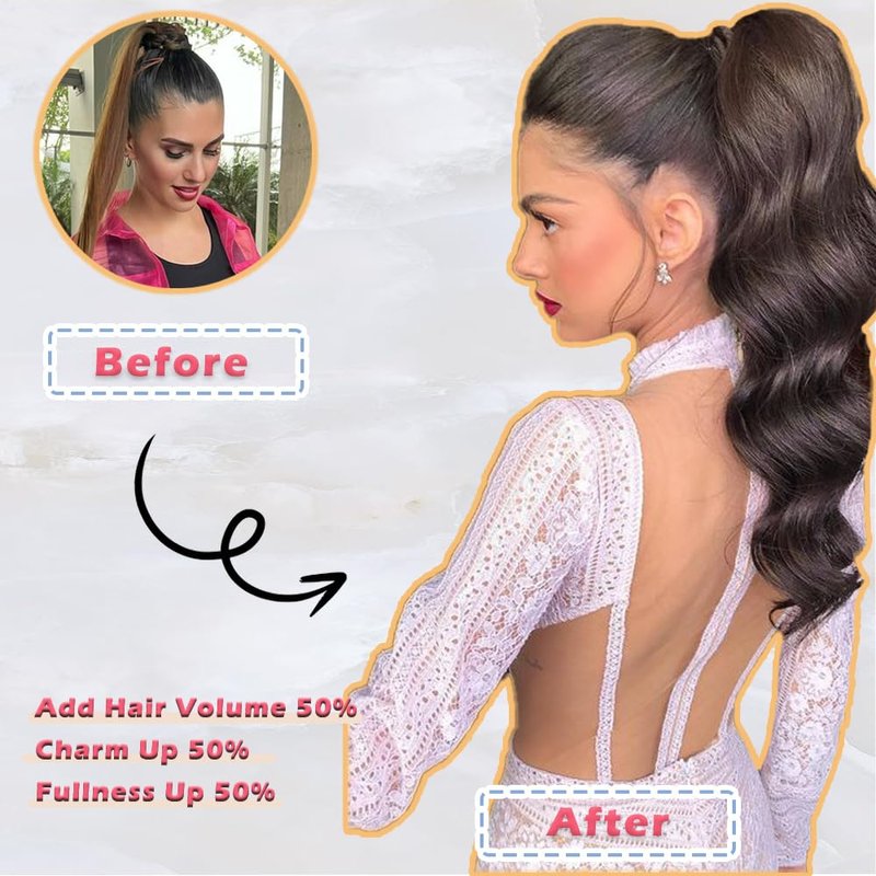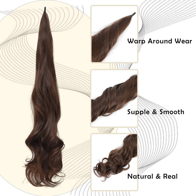 - 【Product Material】Heat resistant synthetic fiber; Length :32 inches; Weight: 105g; Unlike other products on the market, our newly designed Flexible Wrap Around Ponytail is more flexible and not easy to break. Unique hair texture, more soft and natural