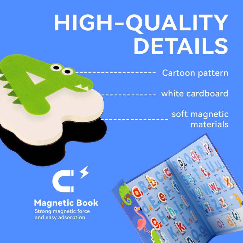 - Unique Design: 26 magnetic uppercase letters and lowercase with vivid animals on each representing the letter, like A for alligator, is a very cute set of alphabet learning toys. It arouses children’s interest greatly, making kids learn the alphabet as well as animals.
