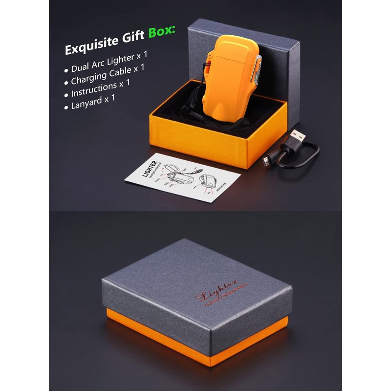 Double arc Lighter, Electric Lighter with Built-in Flashlight, Rechargeable Plasma USB Lighter, flameless Plasma Lighter with Lanyard, Used for Camping, Hiking, Survival igniter (Orange)