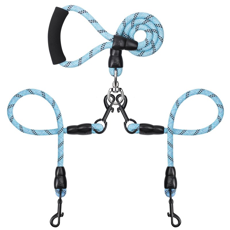 Mengbei tribe The multifunctional 2 in 1 dog traction rope makes walking for one dogs or double dogs more convenient and easy.tangle free, comfortable handle, durable metrial, let’s enjoy the happy time with your dogs! Chew resistant,No harm: Prevent your pets from eating rope fragment.Thickening soft pad handle: Added comfort by absorbing the tension and protecting your hands. This double dog leash suitable for small to large dogs such as Poodle,Golden Retriever, Dachshund ,Huntaway ,german shepherd, Samoyed, Husky,Shih Tzu, pitbull, terrier, Eskimo dog, Dalmatian dog, Teddy ,Samoyed. you can go wherever with your dog.