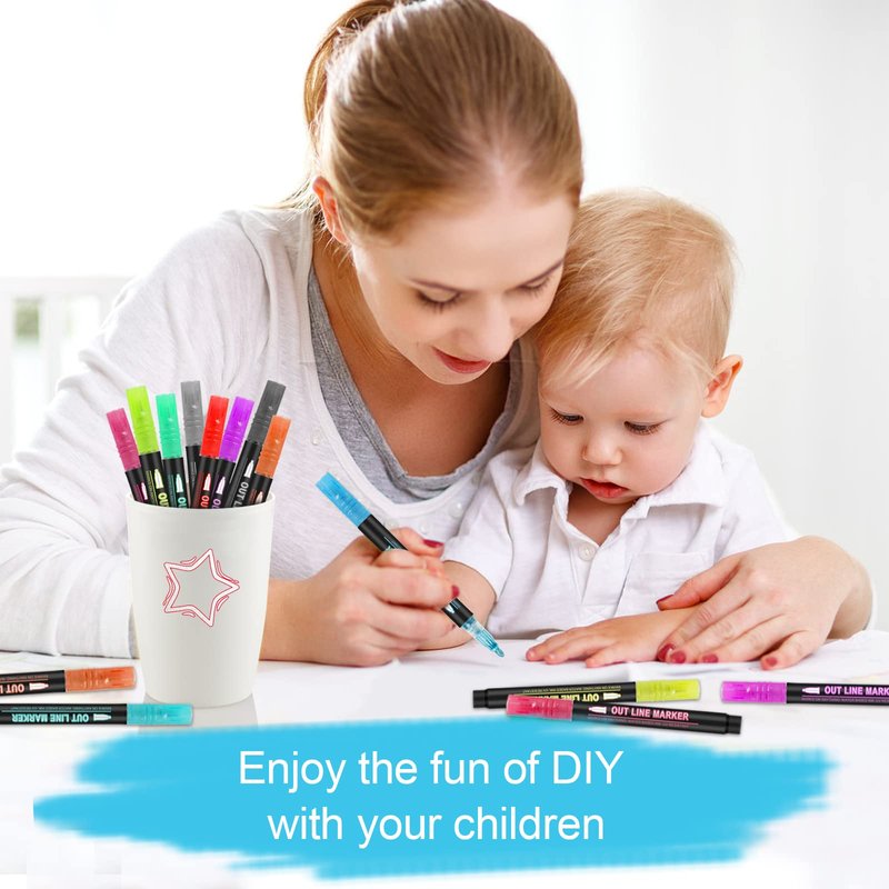 - 【Best gift】Self-outline metallic markers are great gifts for family and friends, children and adults on children's day, easter, birthday party, christmas, halloween, valentine's day, mother's day, thanksgiving, back to school, new year.
