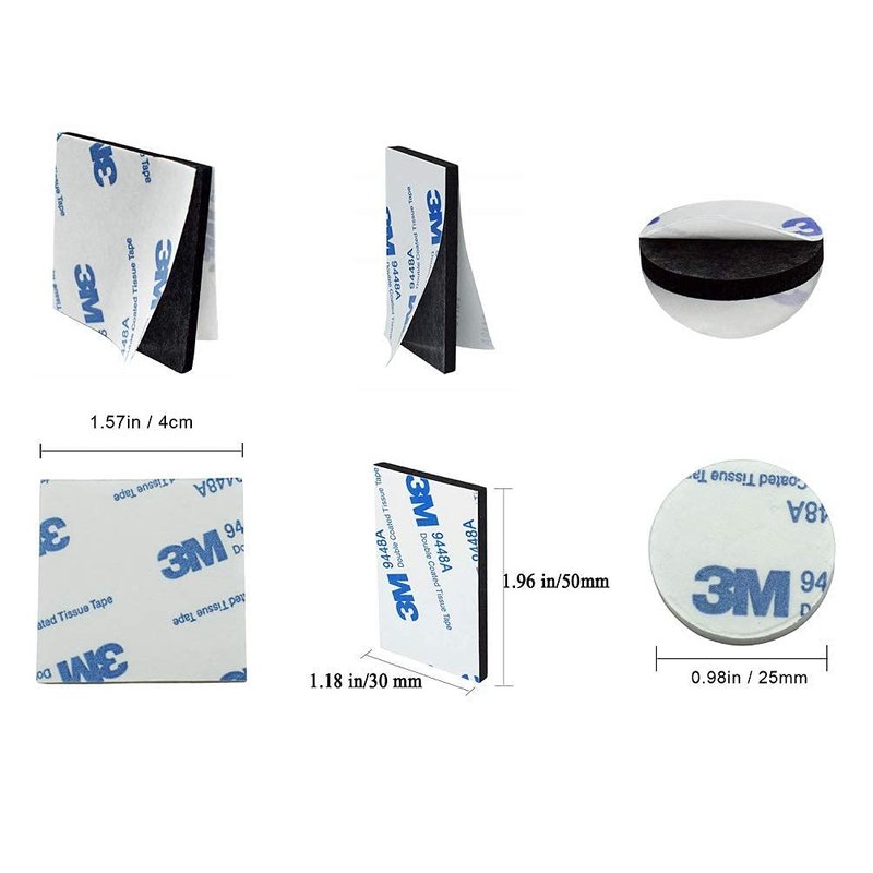 - ❀Dimensions: These square double-sided foam pads are 4 x 4 cm (L x W), thickness: 2 mm.Rectangular double-sided foam pads are 5 x3 cm (L x W), thickness: 2 mm.Round double-sided foam pads are diameter 25mm, thickness: 2 mm.