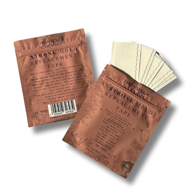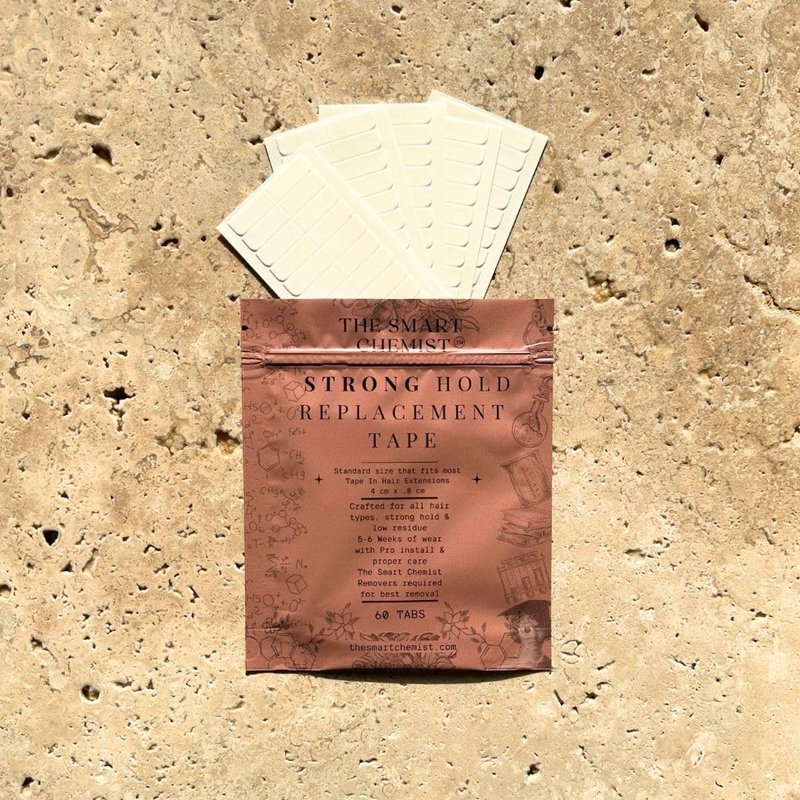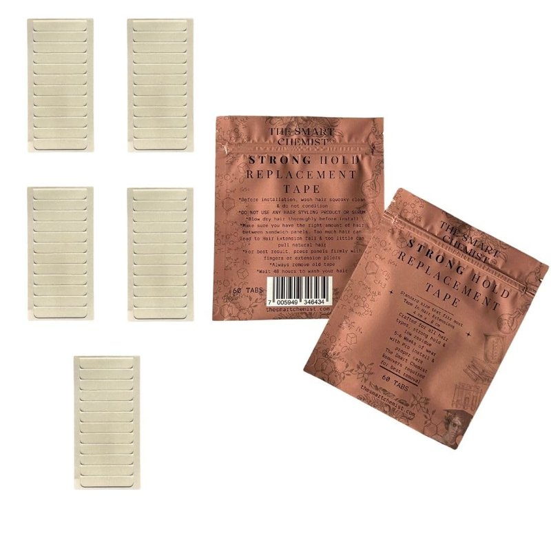 - The Smart Chemist Double sided tape tabs are suitable for all hair types. Low residue and Strong hold that lasts up to 8 weeks with proper install and care