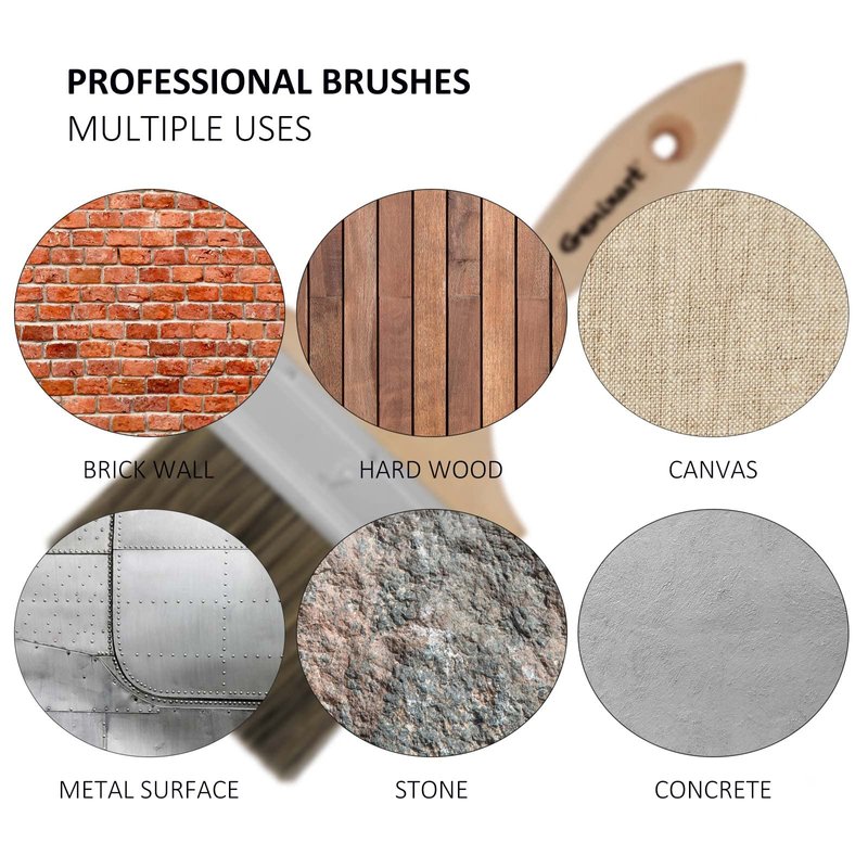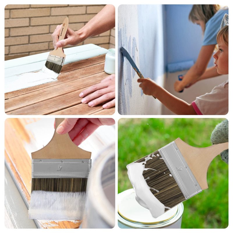 - š¦ćWide Practical UsećOur great value multi-purpose wall paint brushes can be worked with most kinds of oil & water-based paints, stains, polyurethane, gloss, emuls, latex, resin, wallpaper paste, adhesive glue, or primer paints. Good choice for paint application on windows, doors, furniture, wooden fences, metal decks, walls and ceilings. These multifunctional household polyester bristle paint brushes are ideal for home DIY.