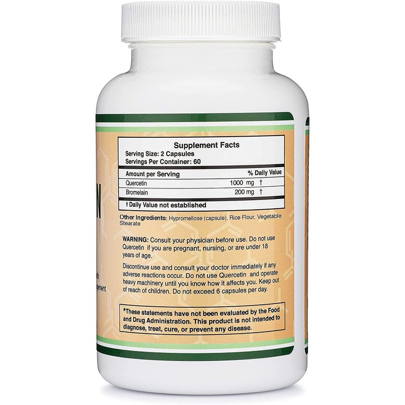 - 2 Month Supply: We include enough Quercetin and Bromelain to provide 60 servings of 1,000mg Quercetin and 200mg Bromelain