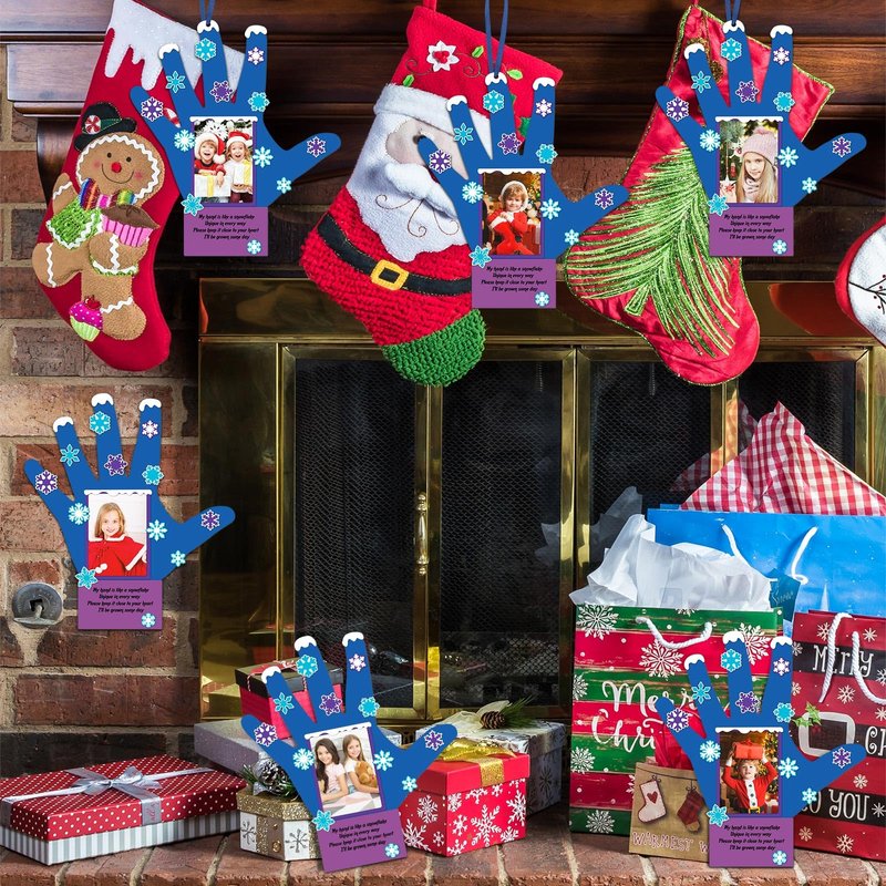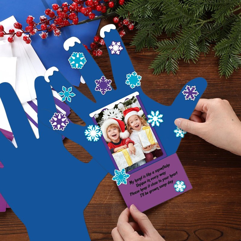 - Package Includes: this Christmas snowflake handprint craft includes 24 sets of DIY Christmas crafts with 24 pieces of ribbons in blue; The included card size is about 7.09 x 7.87 inches/ 18 x 20 cm, and can be cut into unique palm shapes according to your own hands