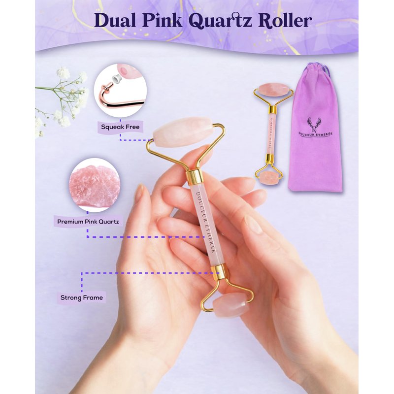 - Relive a spa-like facial massage with our dual pink quartz Jade Roller to relieve facial tension, reduce puffiness and boost circulation for a refreshing rejuvenating skin