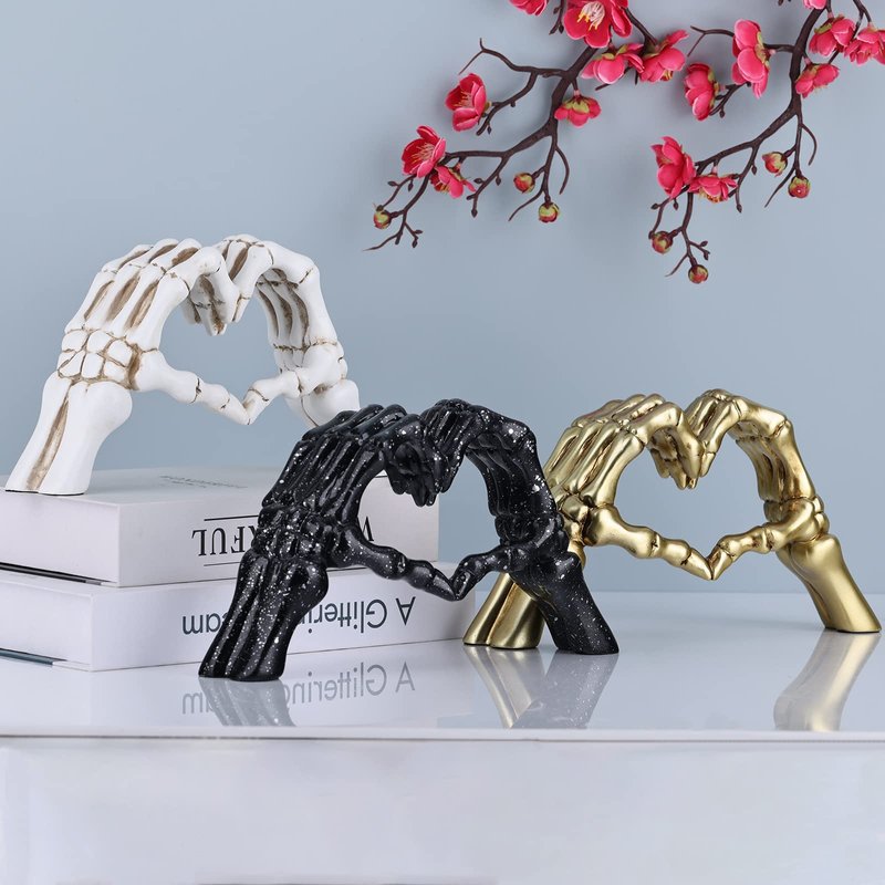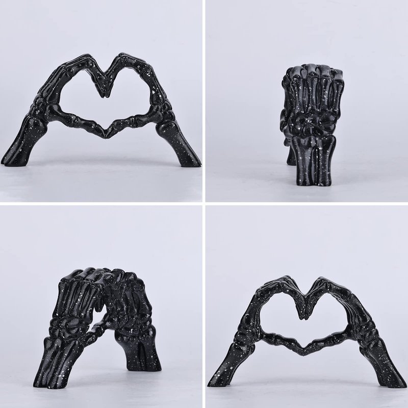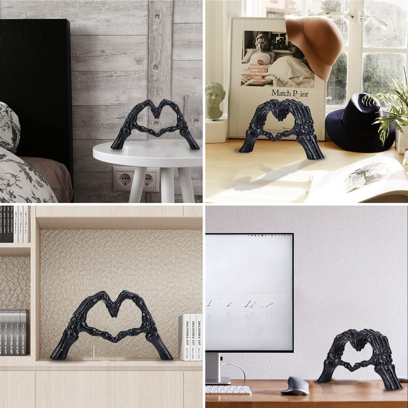 DOVDOV Hand Bone Hand Heart Statue, Black Home Decor, Halloween Table Decorations, Scary Finger Decorative Sculpture, Halloween Decorations Coffee Table Bookshelf Living Room Bookshelf.