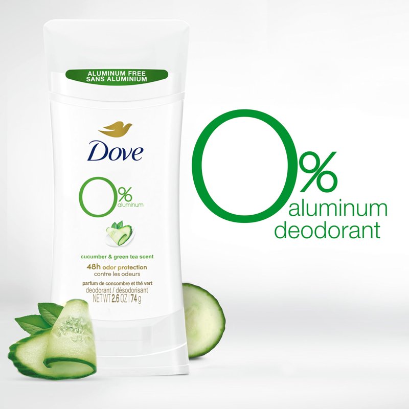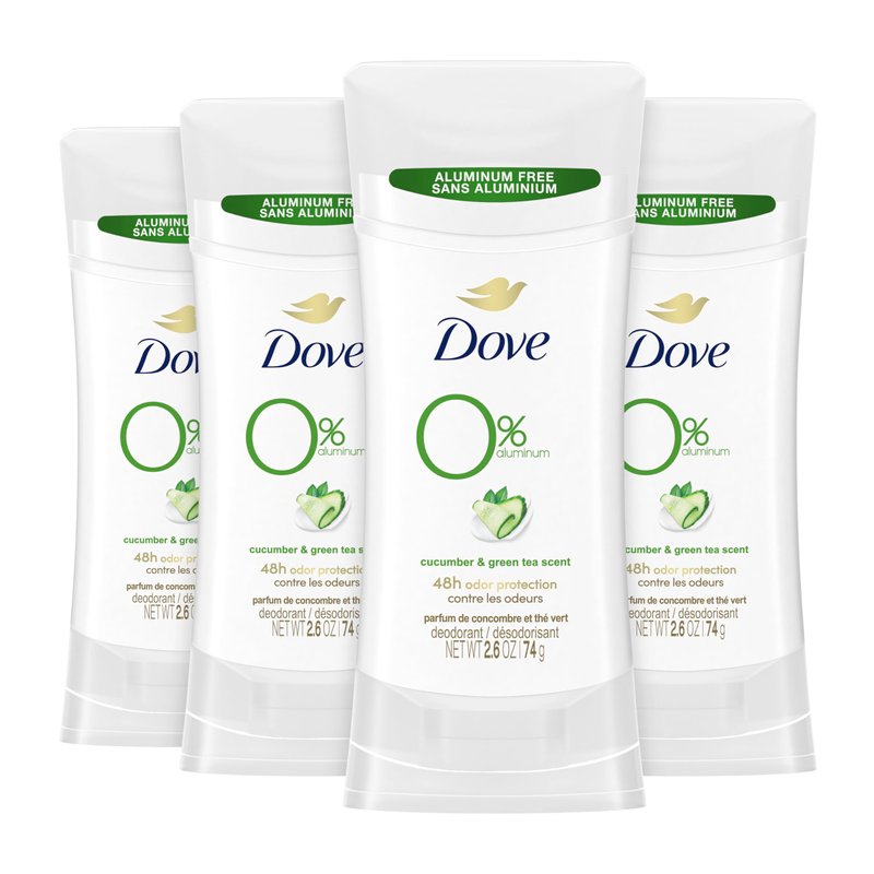 Dove 0% Aluminum Deodorant Stick Cucumber and Green Tea 4 Count Non-irritating Deodorant for Underarm Care Kindest Aluminum Free Deodorant 2.6 oz
