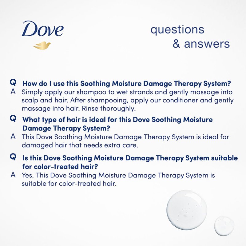 - DOVE SHAMPOO AND CONDITIONER: Dove Damage Therapy shampoos and conditioners work in harmony with your hair for 100% flake-free strands with regular use.