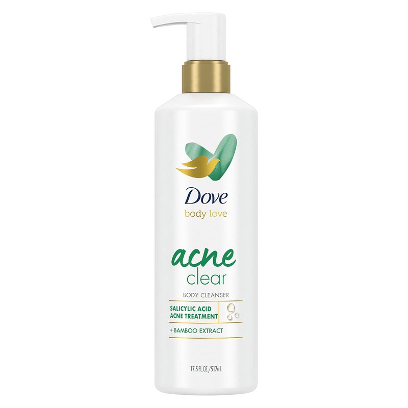 - DESIGNED FOR ACNE-PRONE SKIN: Dove Body Love Acne Clear Body Cleanser helps clear your blemishes and helps prevent new blemishes from occurring
