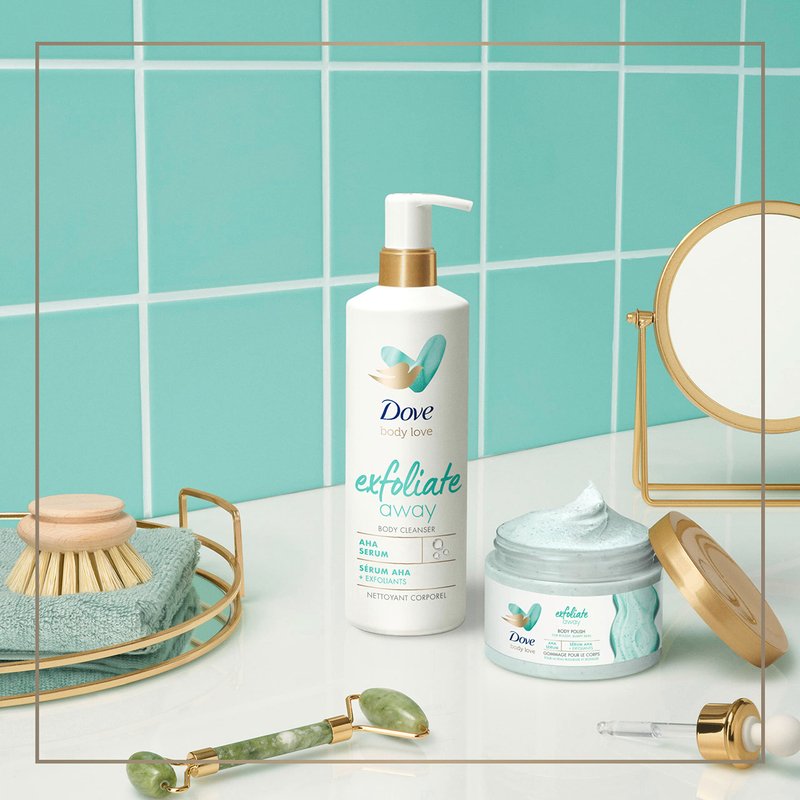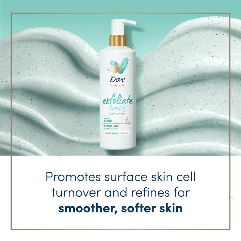 - EXFOLIATE AWAY: Dove Exfoliate Away Body Cleanser transforms rough, bumpy skin into soft and visibly smoother skin, unlike an ordinary cleanser or body soap