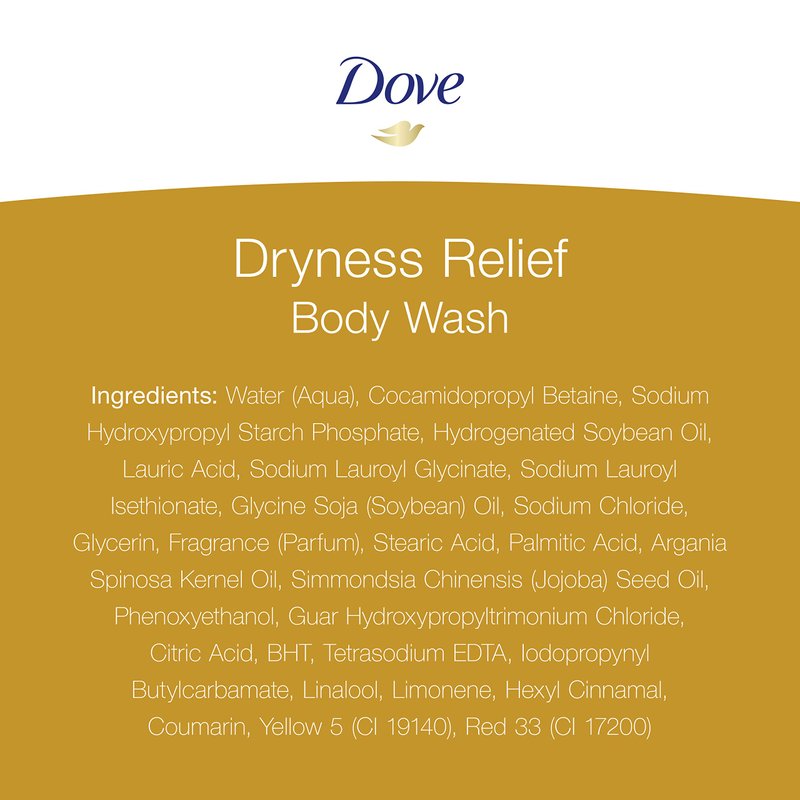 - Dove Dry Oil Moisture Body Wash is infused with Jojoba Oil to help lock in moisture, which helps give you softer, smoother skin, unlike your typical bath gel or bath wash.