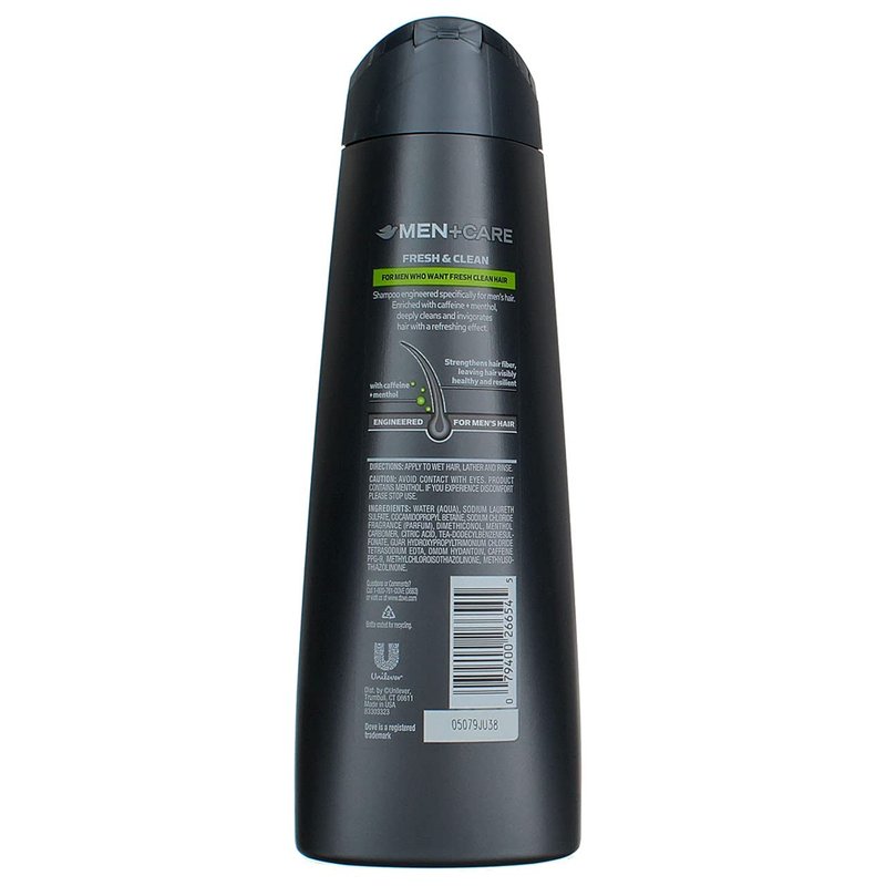 Dove Men + Care Fortifying 2-in-1 Shampoo + Conditioners make hair stronger and more resilient so that men can pursue their active lifestyles. Dove Men + Care Fresh & Clean 2-in-1 Fortifying Shampoo + Conditioner is designed specifically for men that want fresh clean hair. It deeply cleans and invigorates hair with a refreshing effect, and is infused with caffeine + menthol. It helps strengthen hair, leaving it visibly healthy, thicker and resilient, with a dual 2-in-1 formula that functions as a shampoo and conditioner so that it cleanses and conditions hair simultaneously, so that it can keep up with men's active lifestyles and everyday activities that can weaken hair, making it more prone to hair fall from breakage. It is available in the following sizes: 12 oz, 25.4 oz, 32 oz, 40 oz, and 3 oz. Great hair care doesn't stop in the shower! Complete your hair care regimen and get the perfect look with the Dove Men + Care Sculpting Paste for a natural look, Defining Pomade for a sleek and polished finish, or Control Gel for all-day hold. Use it with the entire line of Dove Men + Care products for the perfect grooming regimen, such as Dove Men + Care Extra Fresh Body Wash and Dove Men + Care Dry Spray Antiperspirant.